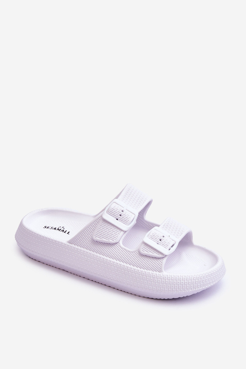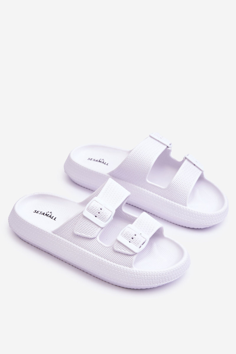 Dámske šľapky s penou a pásikmi biele Sharmen