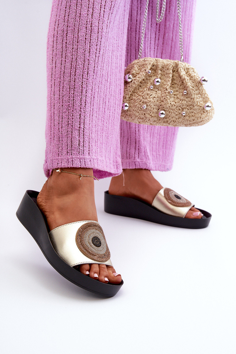Kožené šľapky dámske s ornamentmi S.Barski KV27-019 zlatej farby