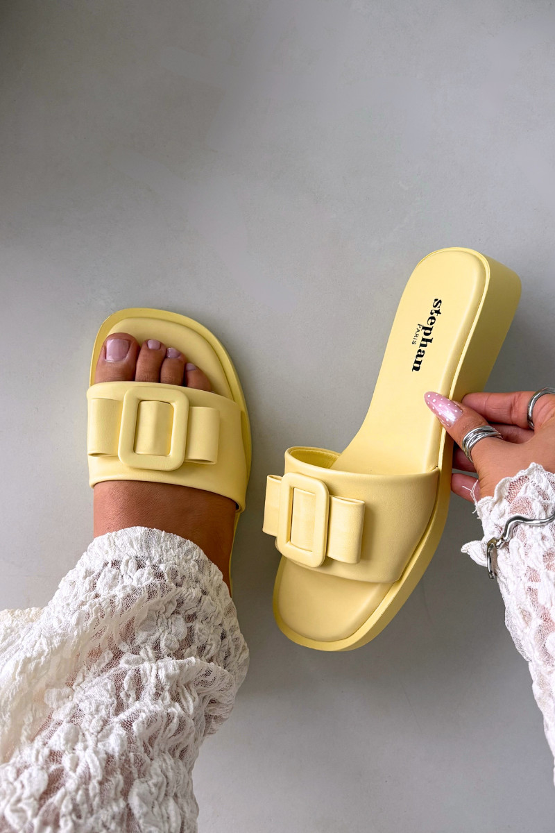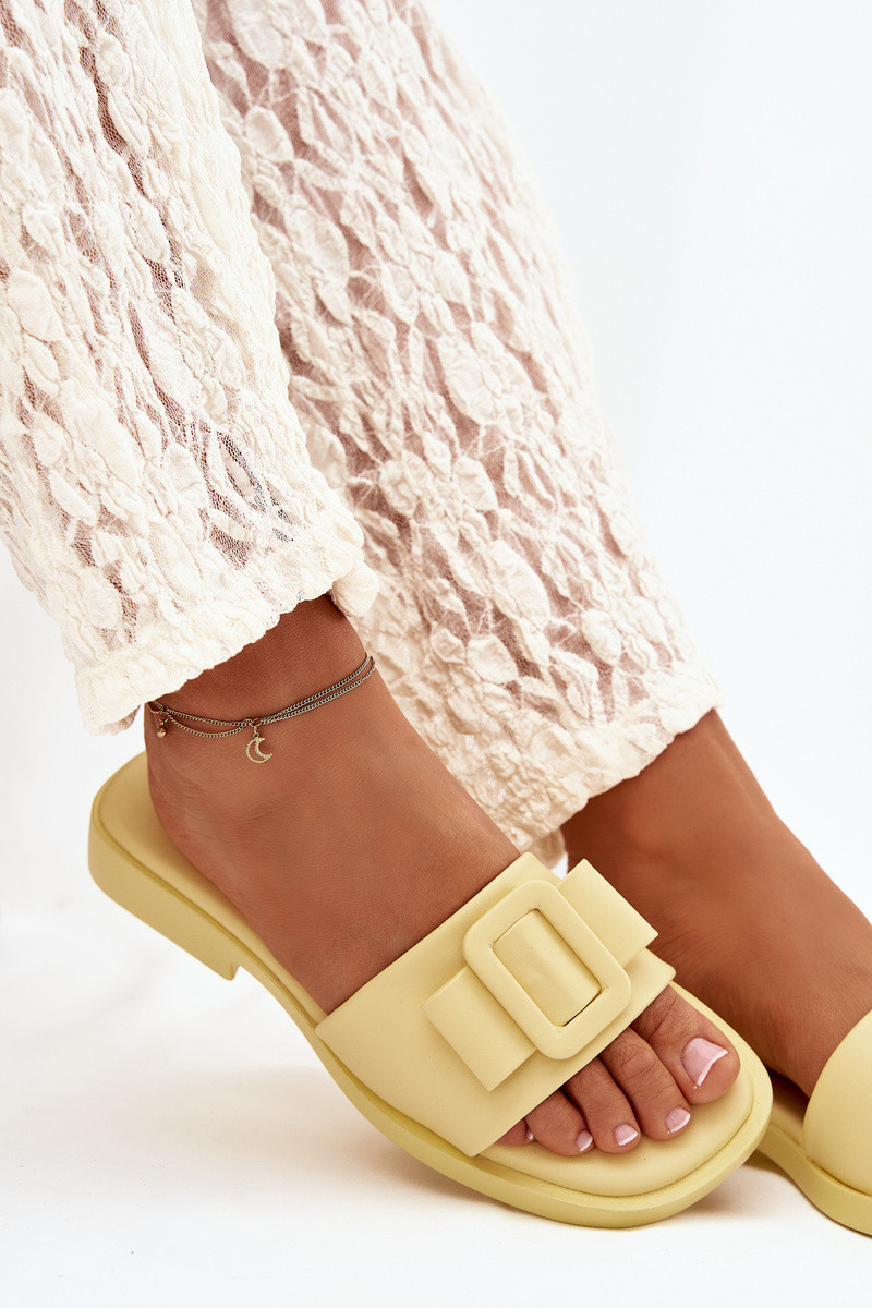 Dámske šľapky s širokými podpätkami a prackami v žltej farbe „Melivra"