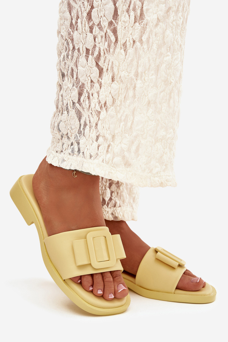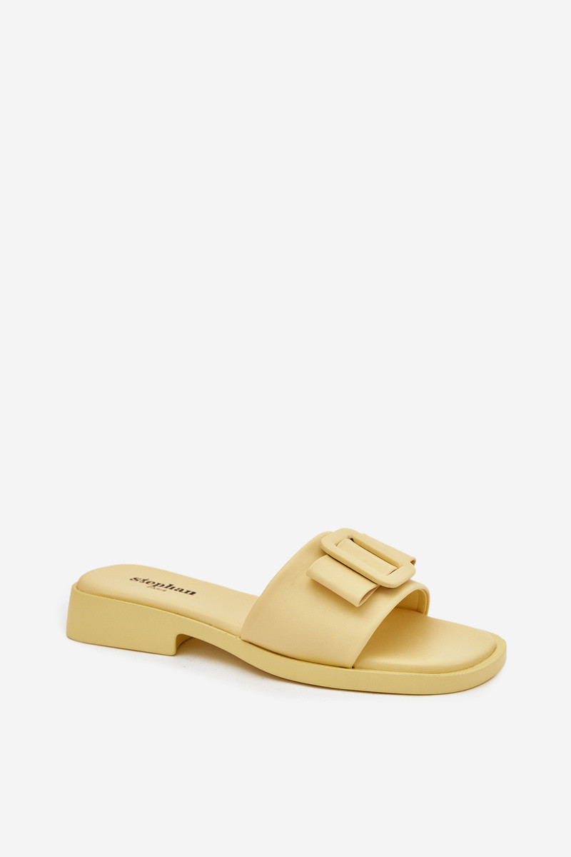 Dámske papuče so širokými podpätkami s prackami žltá Melivra