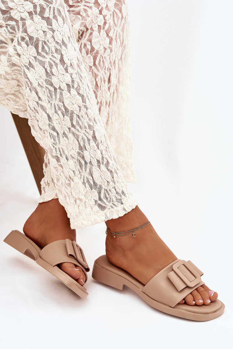 Dámske šľapky s širokými podpätkami a prackami v pieskovej farbe „Melivra"
