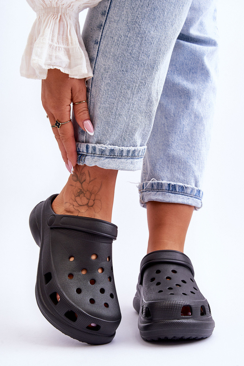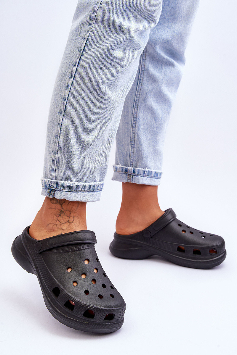 Crocs penové šľapky s módnymi masívnymi podrážkami čierne Katniss