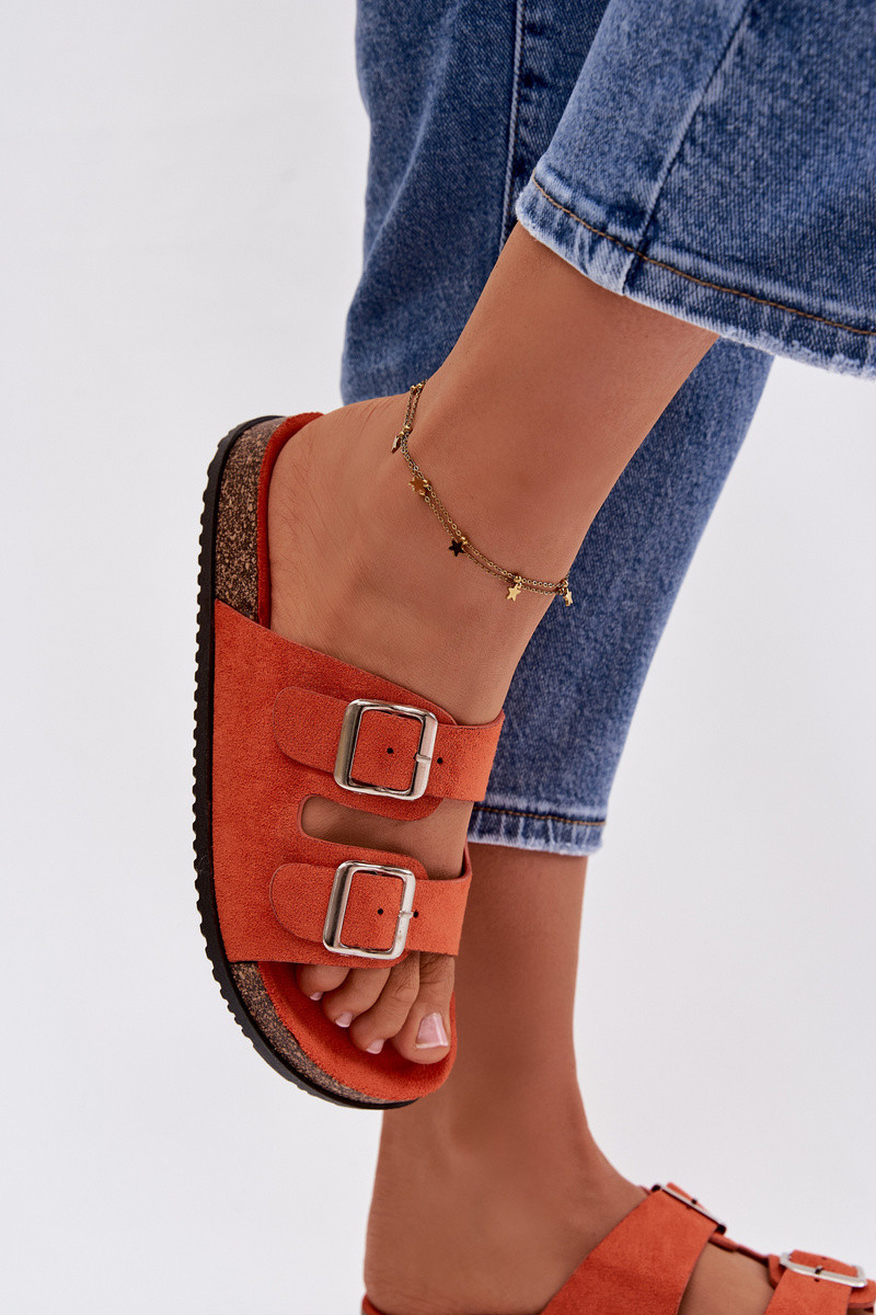 Oranžové dámske šľapky Oliena so sponami