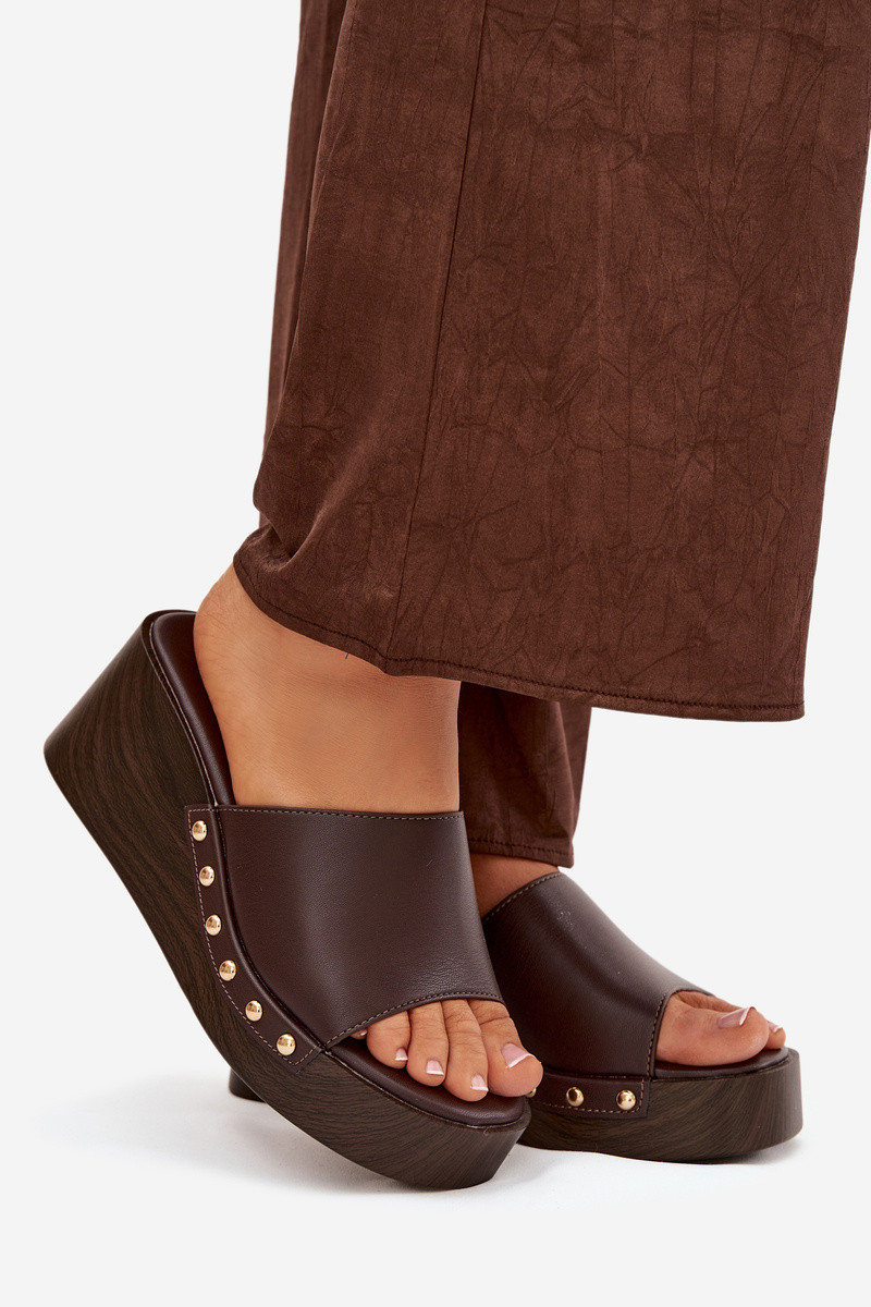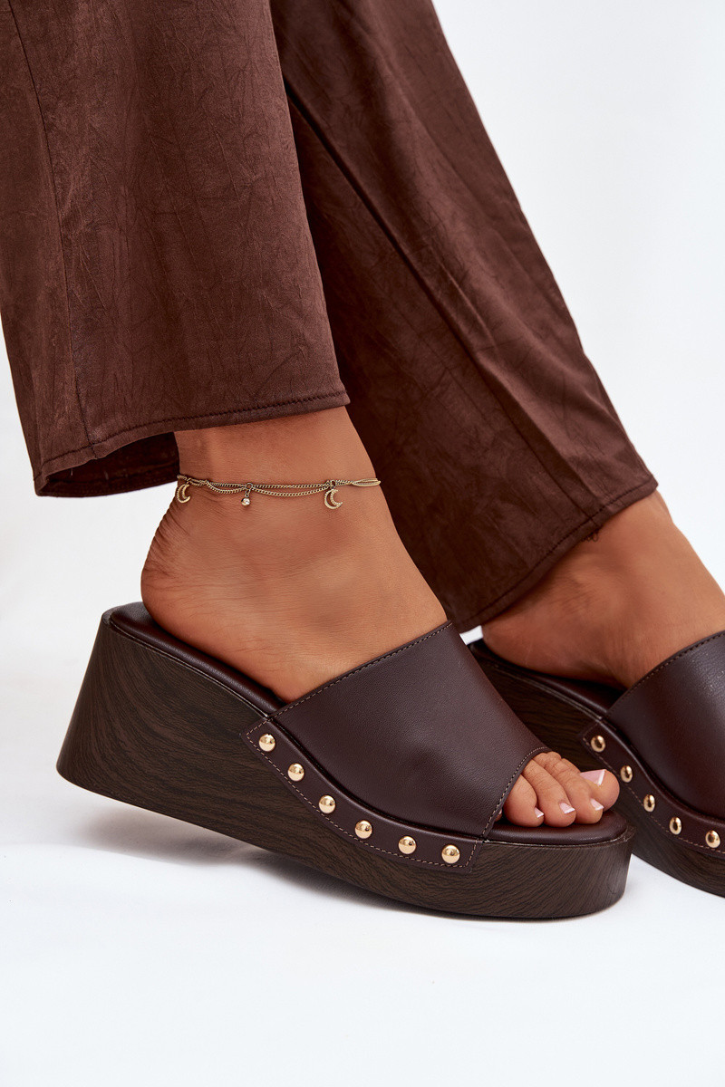 Dámske sandále na platforme so zlatými cvočkami v čokoládovej farbe Arionne