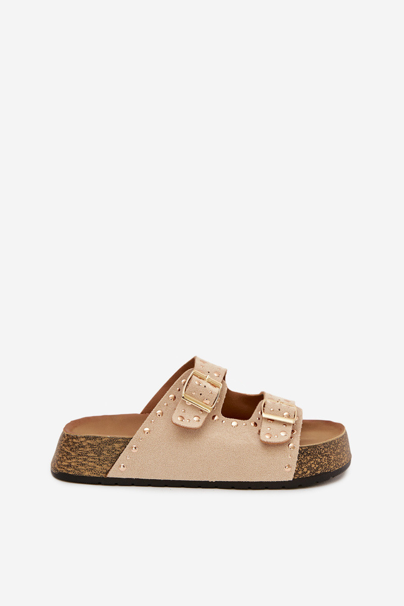 Dámske papuče Ze zlatej farbymi s prackamimi A cvoky slonovina Tervina