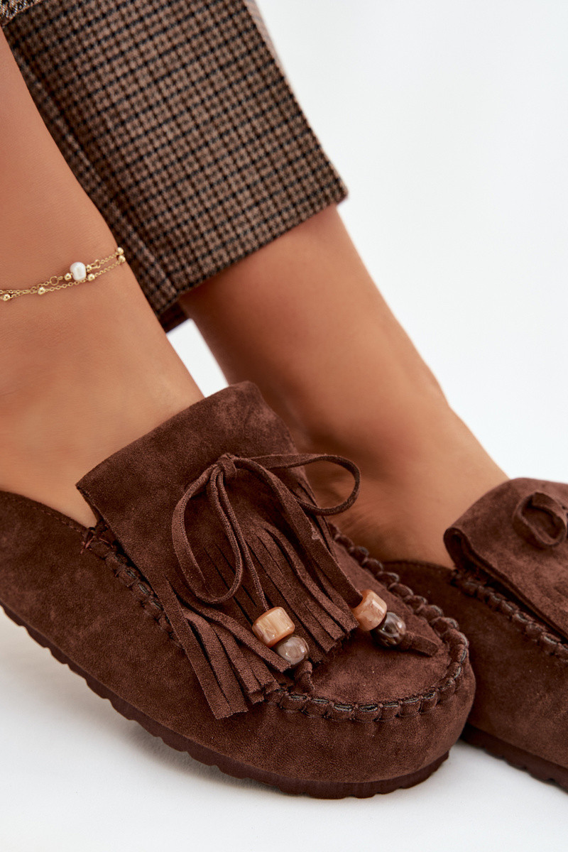 Dámske papuče Mule so strapcami I koralové farbyikami CzekoladoIne Belissa