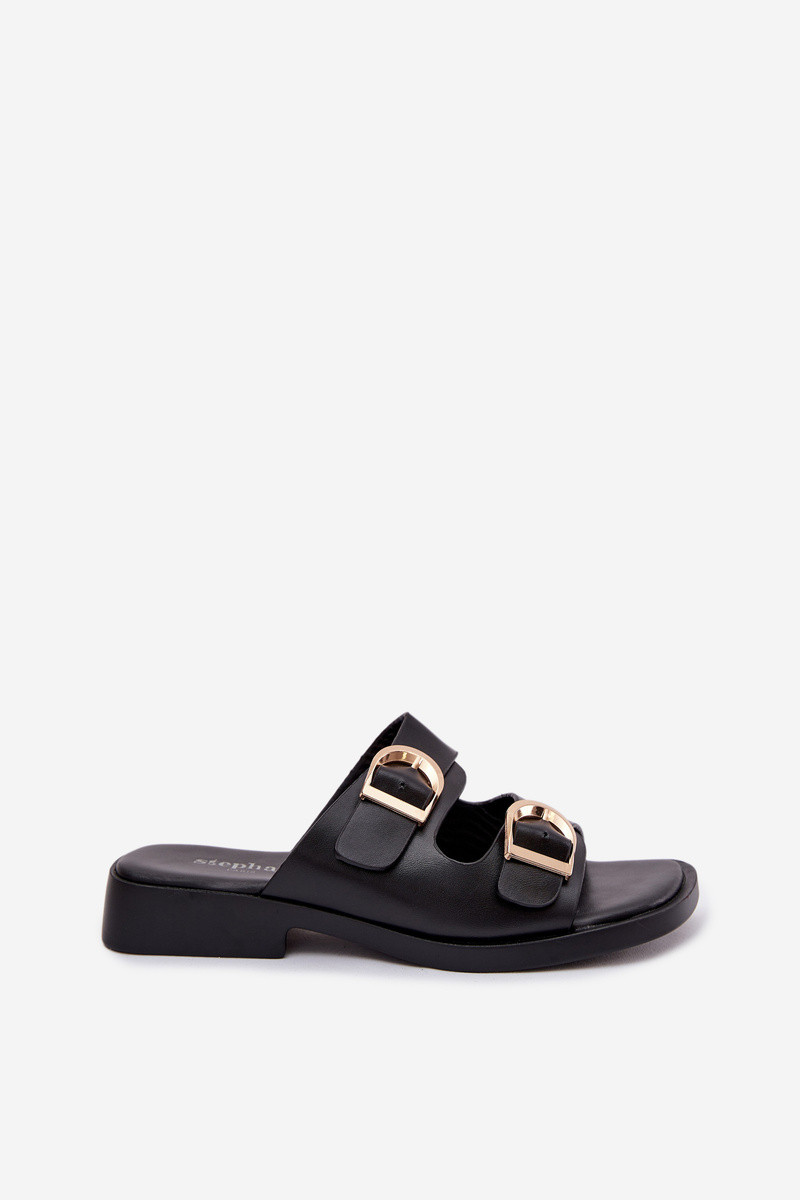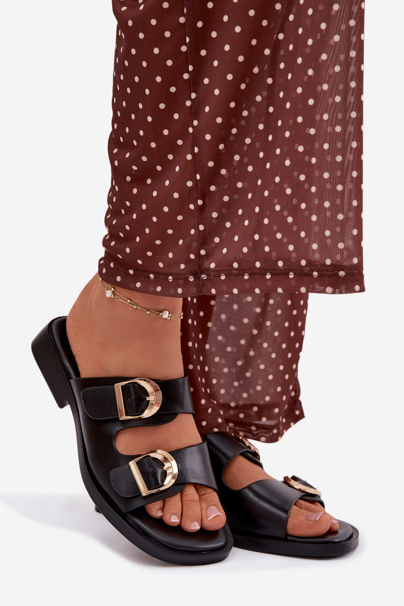 Dámske papuče so zlatými sponami, čierne