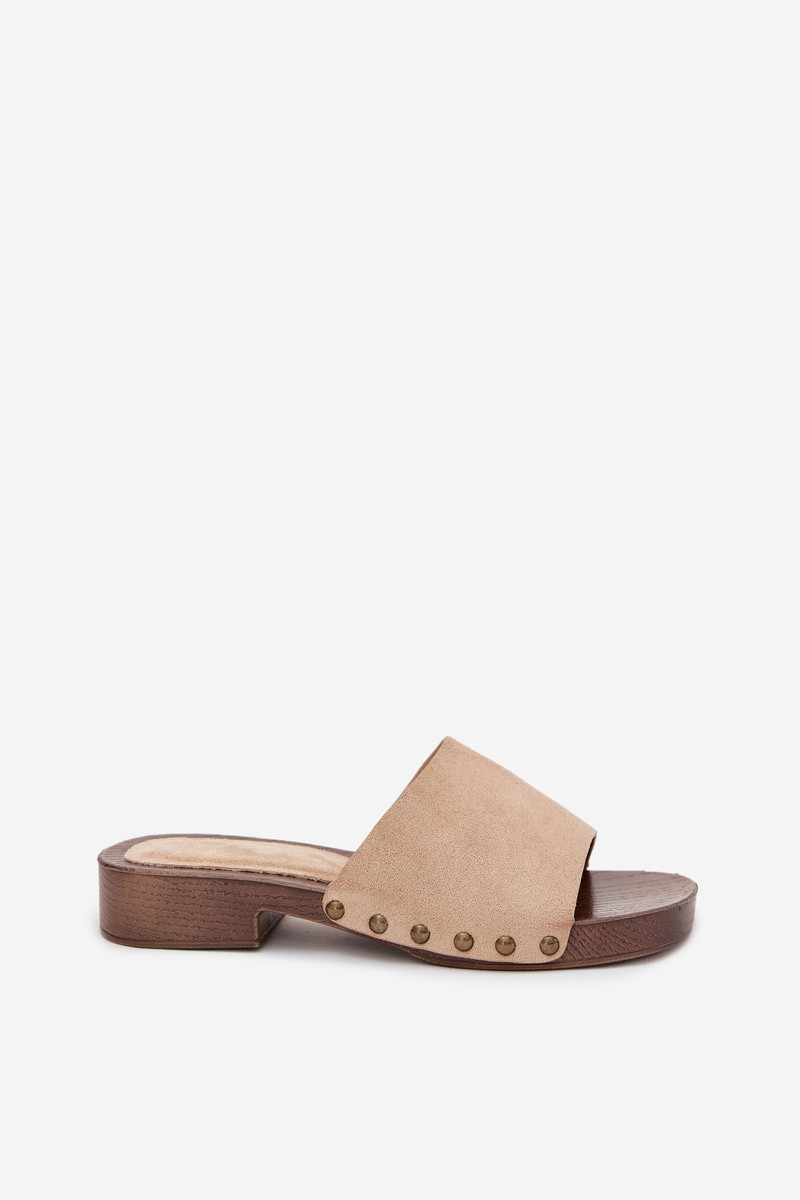 Dámske papuče so širokými podpätkami Ze zlatej farbymi Svorníky béžová Girella