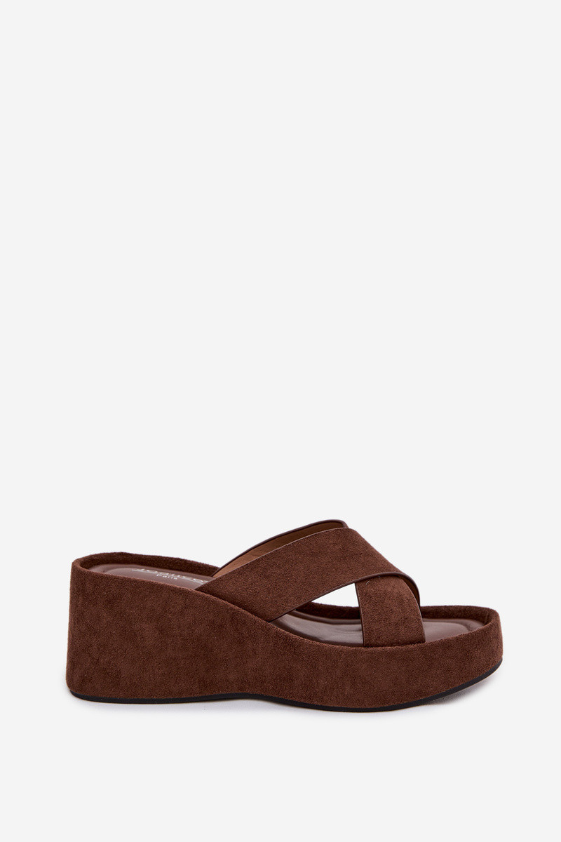 Čokoládové dámske šľapky na platforme z umelej kože „Calorine"