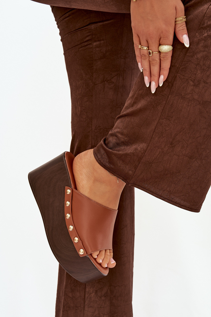 Dámske papuče Zapnuté INedge s nitmi Hnedá farba Máreline