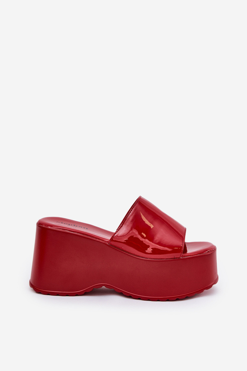 s lakovým efektom Dámske papuče s platformou I Koturnie červená Nellevia
