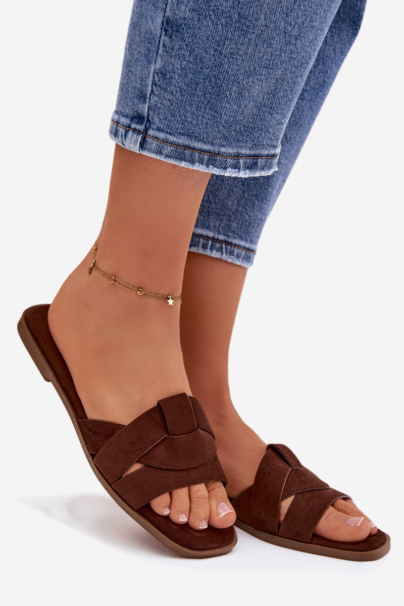 Dámske nízké čokoládové papuče s pásikmi z umelého zamšu Florane
