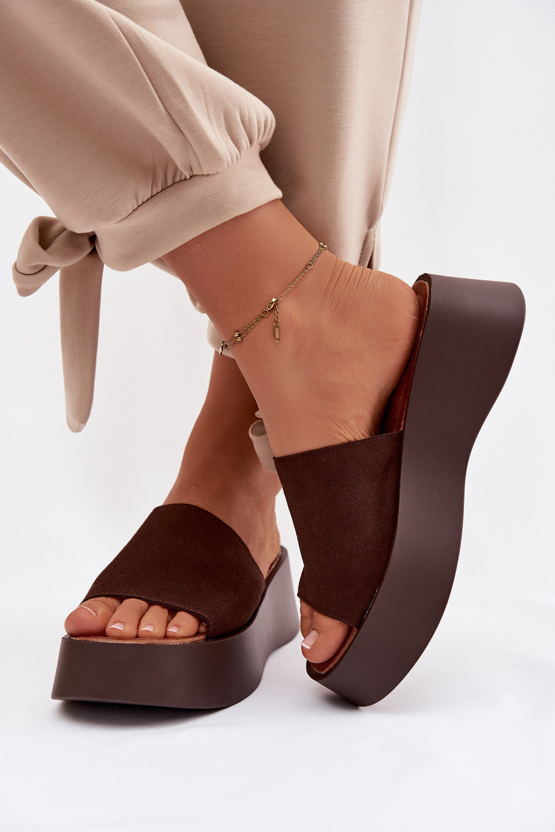 Dámske šľapky s platformou čokoládovej farby Liorisse