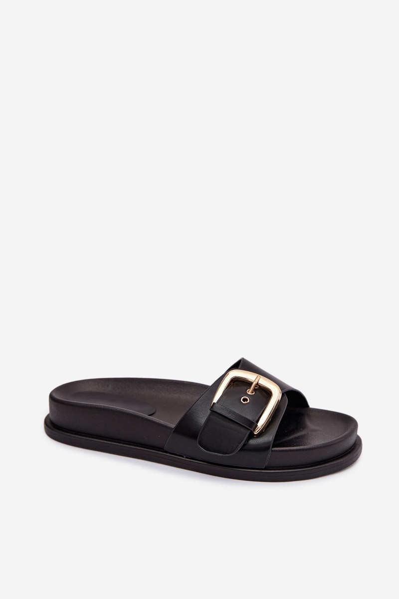 Dámske šľapky so zlatými sponami čiernej farby „Rosivana"