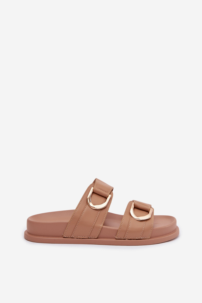Dámske šľapky z umelej kože so pásikmi pieskovej farby „Rosinessa"