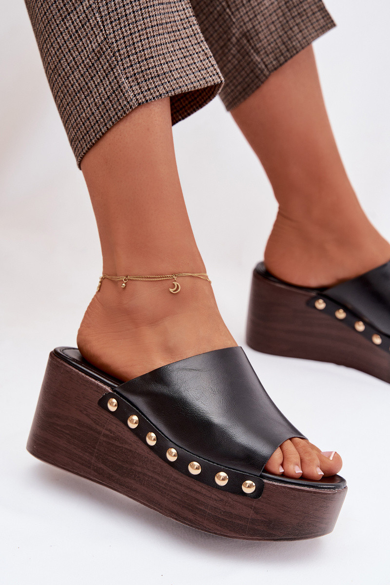 Dámske papuče Zapnuté INedge a platforma Ze zlatej farbymi Svorníky čierna Farinelle