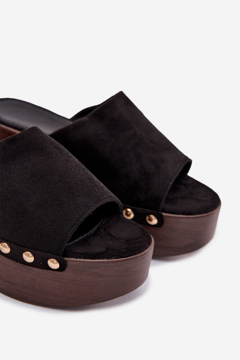 Dámske šľapky na platforme zo syntetického semišu čiernej Helivina