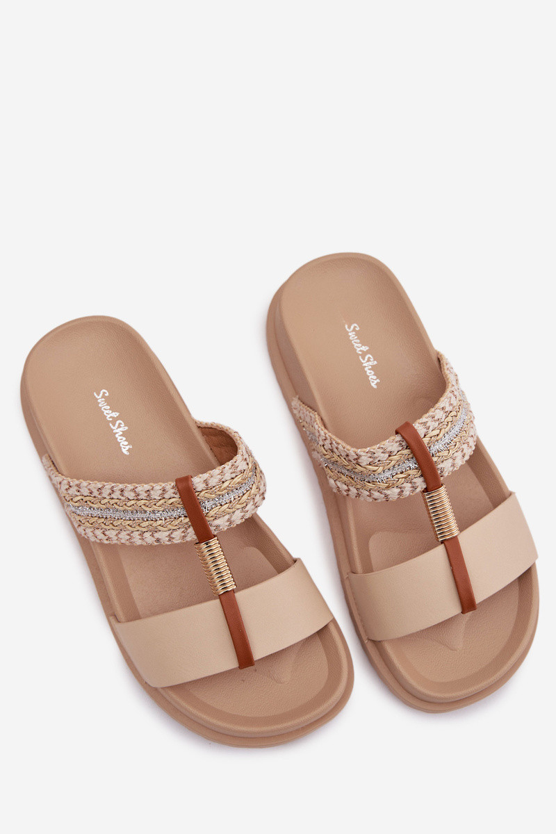 Dámske šľapky s platformou a pásikmi a zlatými detailmi, pieskové, Tahlia