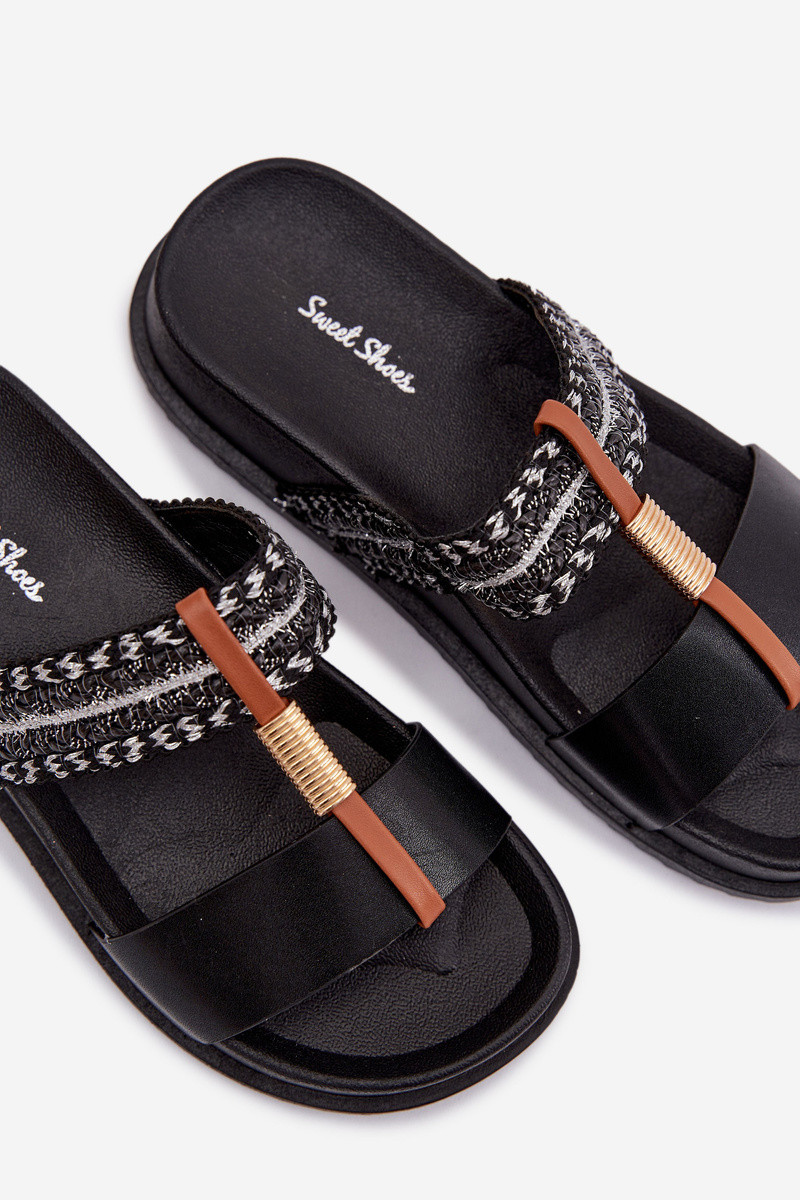 Dámske papuče s platformou S pruhmi I zlatej farbym Detalem čierna Tahlia