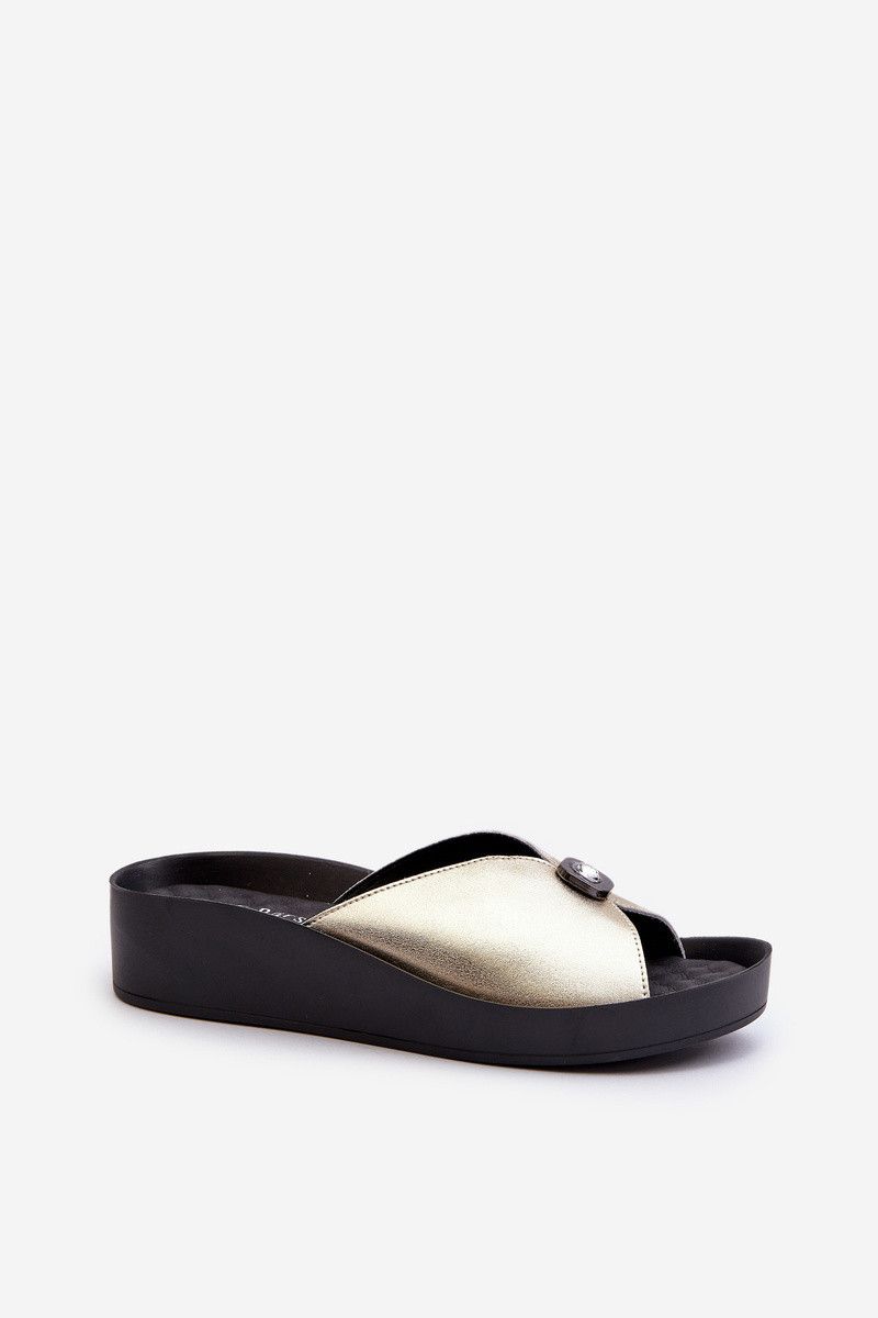 Kožené papuče Dámske s ozdobami zlatej farby S.Barski KV27-027