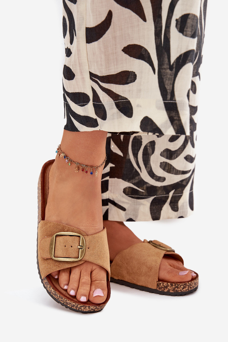 Dámske šľapky Zavira so sponami a platformou hnedé
