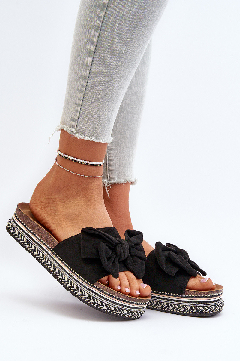 Dámske papuče s platformou so stuhami čierna Evatria