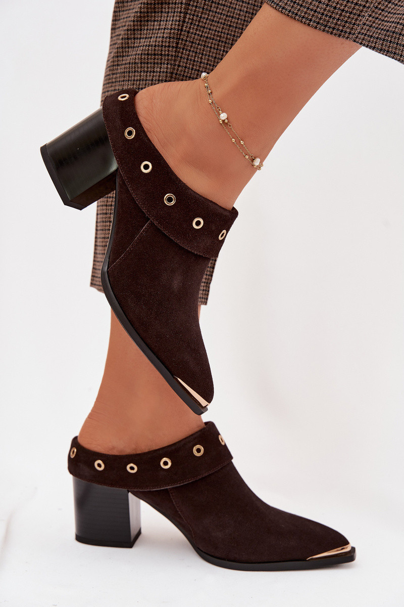 semišové papuče kovbojský štýl Dámske s podpätkami D&A CR61-3059 CzekoladoIne
