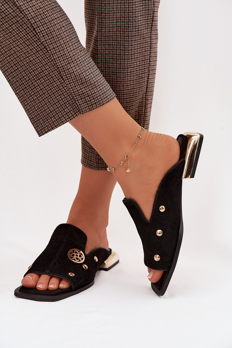Semišové šľapky s ozdobami v zlatej farbe D&A CR61-3061 čiernej farby