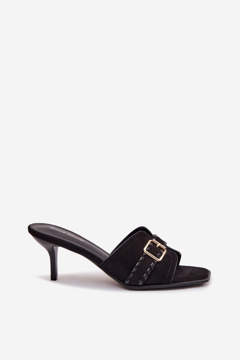 Dámske papuče s tenkými podpätkami s popruhmi I Złotą s prackami čierna Jelira