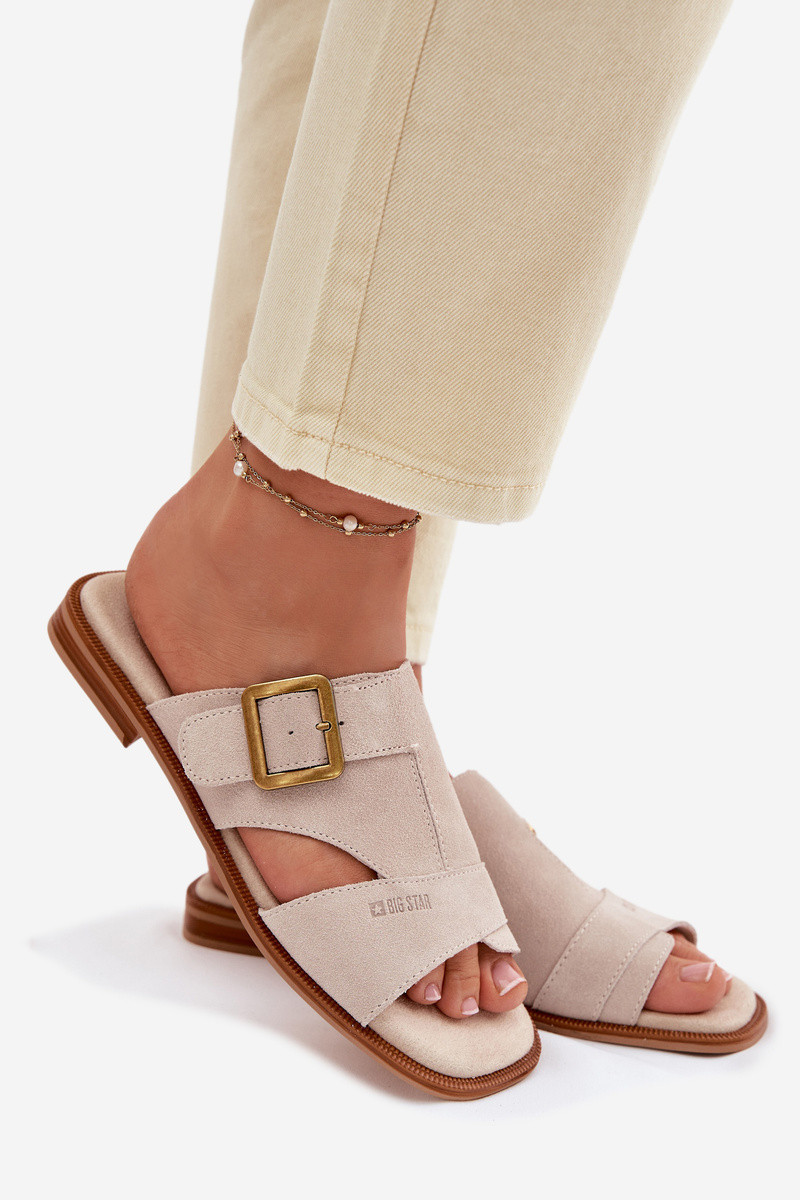 Dámske semišové papuče so širokými podpätkami s prackami Big Star TT274476 béžová