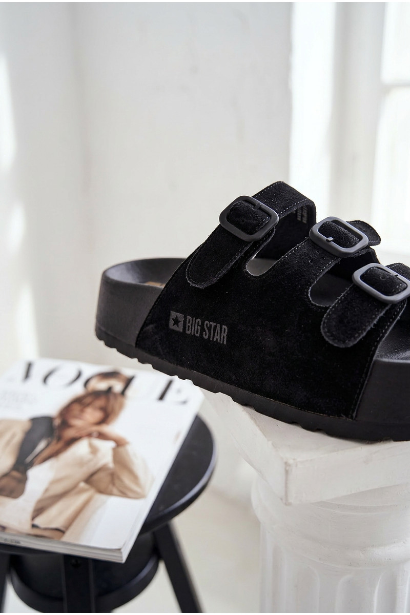 Dámske šľapky s platformou a pásikmi Big Star TT274531 čierne
