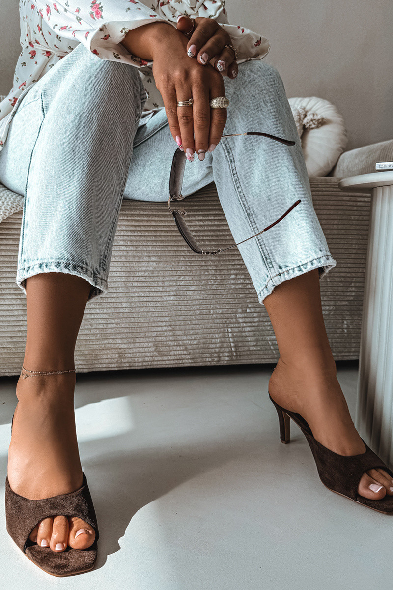 Dámske šľapky s tenkým podpätkom pieskové Revina
