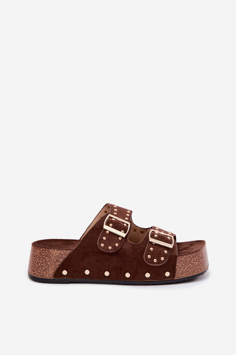 Dámske šľapky v čokoládovej farbe so sponami a cvočkami Ledira