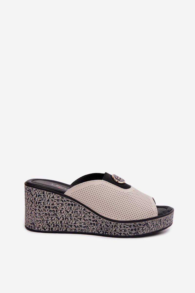Kožené papuče s platformou s ozdobami S.Barski LR61-7011 béžová