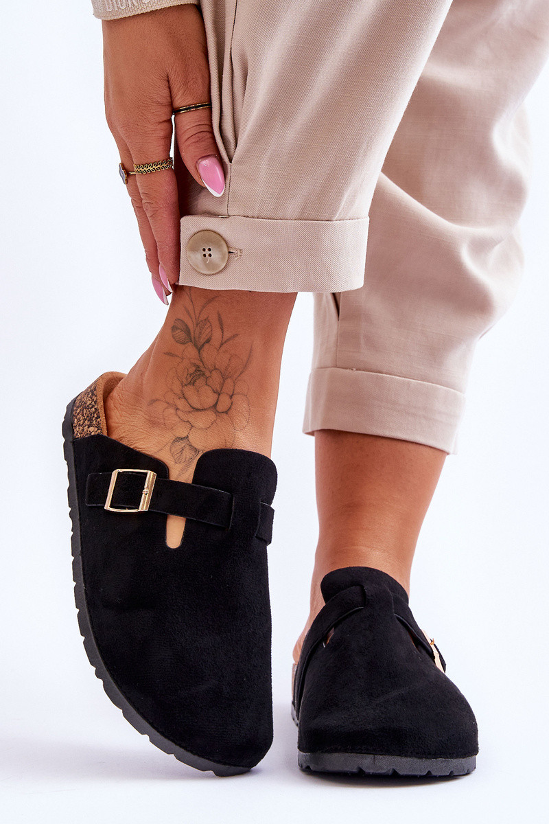 Semišové šľapky na korkovej platforme čiernej farby Vellma