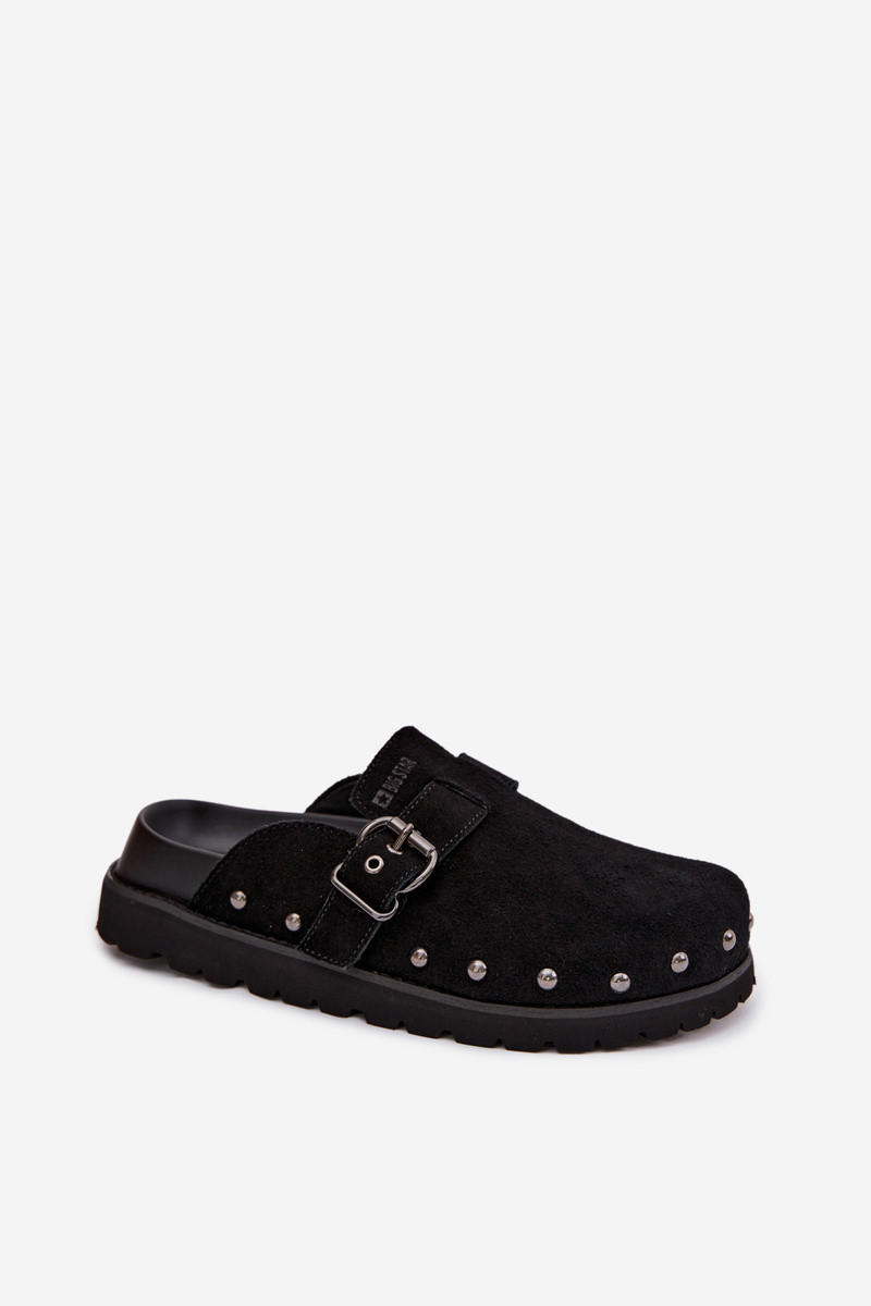 Semišové šľapky s platformou s nitmi a prackami Big Star TT274951 čiernej farby