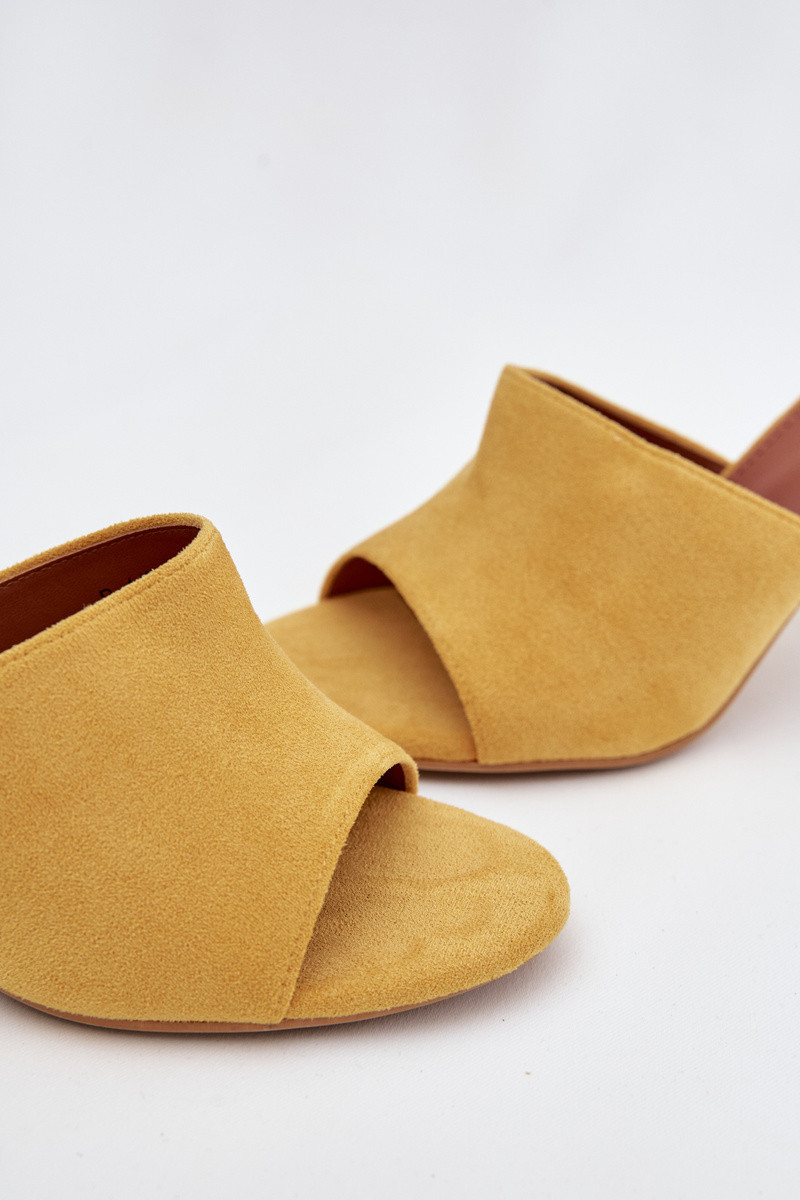 Dámske papuče s tenkými podpätkamiz eko semišuu žltá Isolia