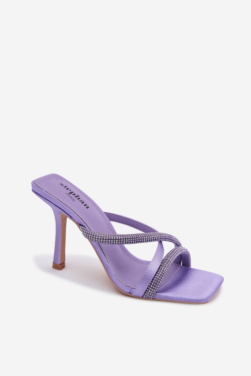 Dámske papuče s tenkými podpätkami Pruhy s trblietavými otvormi Fialová Karima