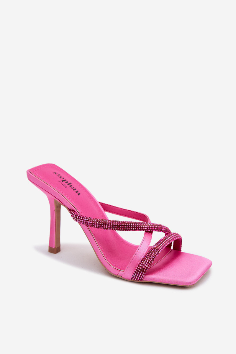 Dámske papuče s tenkými podpätkami Pruhy s trblietavými otvormi Ružová Karima