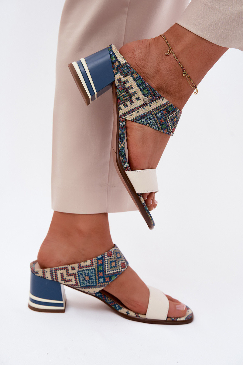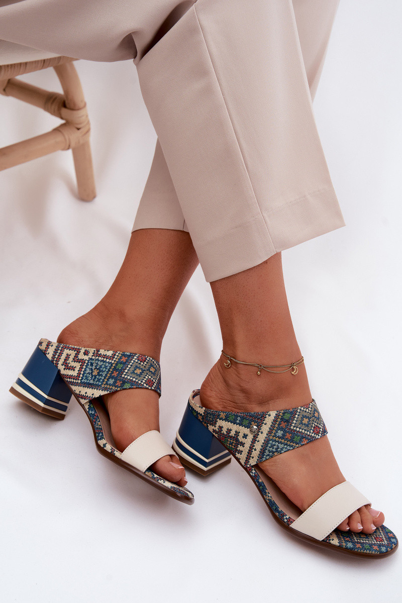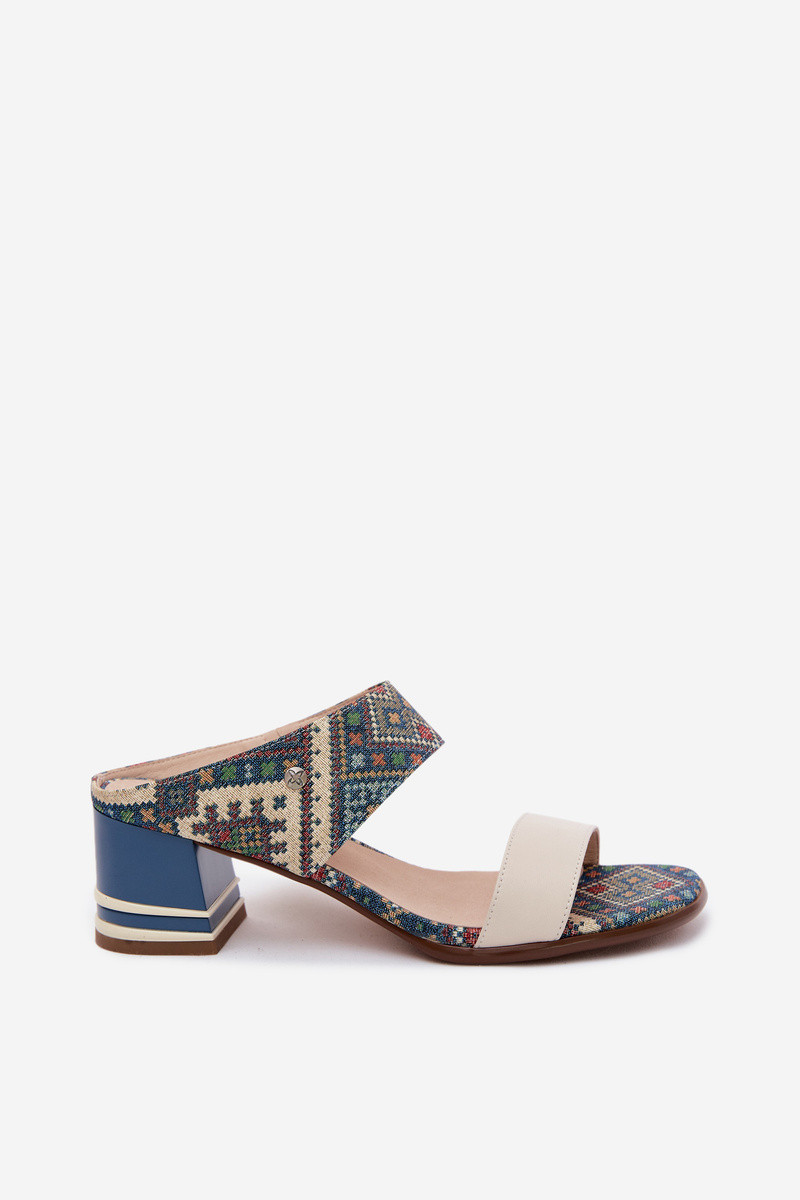 Kožené Vzorované Dámske papuče s podpätkami Máciejka K7522-04 béžová-Modrá