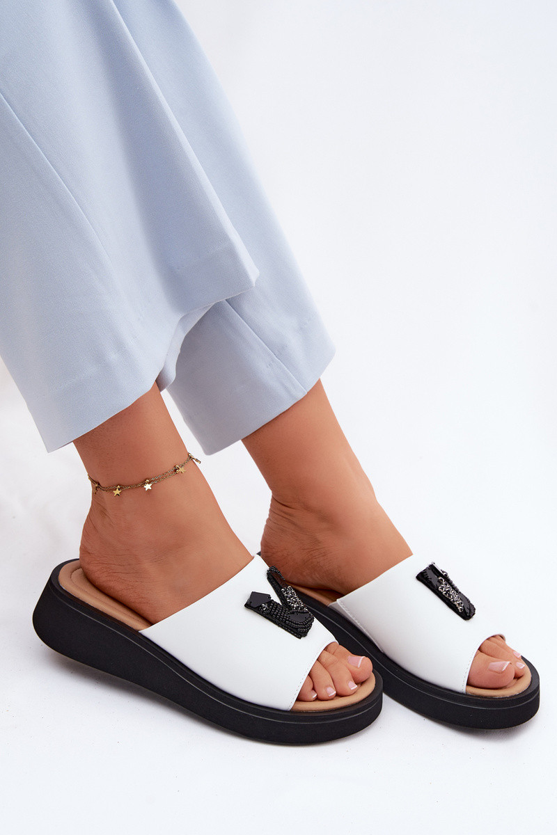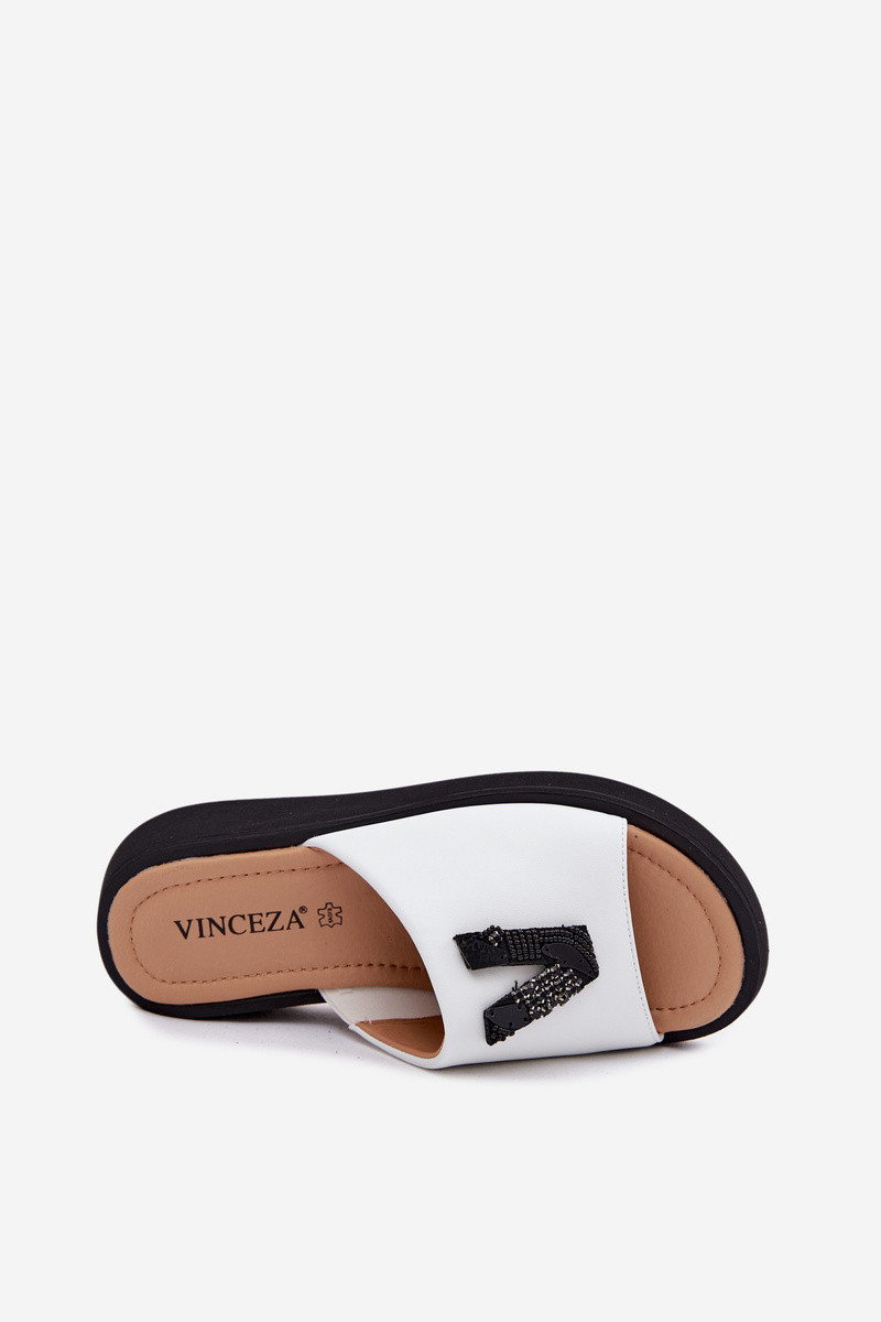 Kožené dámske šľapky s V-tvarovaným zvrškom na platforme Vinceza 66950, bielej farby