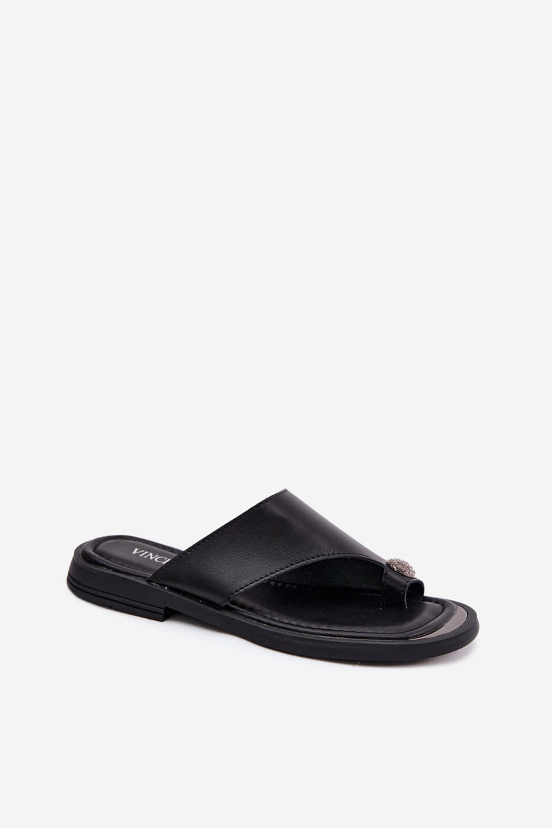 Kožené papuče Plážové šľapky Dámske so širokými podpätkami Vinceza 62307 čierna