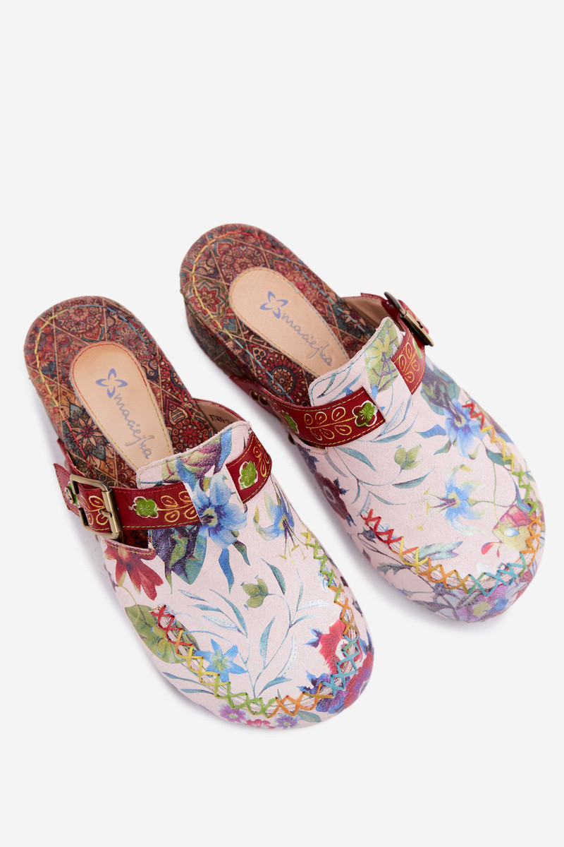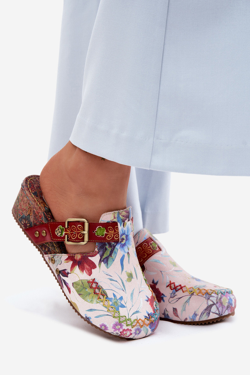 Kožené dámske šľapky s platformou a kvetmi v rôznych farbách