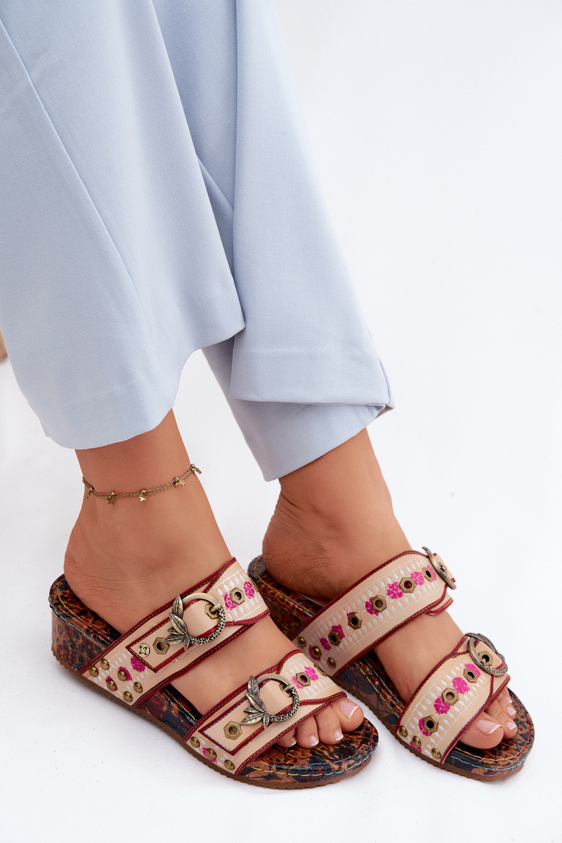 Kožené Vzorované Dámske papuče s platformou Máciejka K7406-04 Rôzne farby