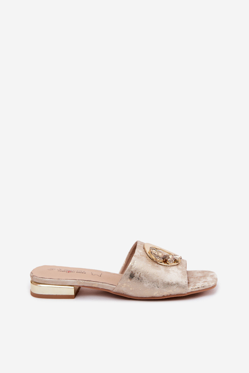 Dámske šľapky so širokými podpätkami a ornamentami KV61-6025 zlatá farba