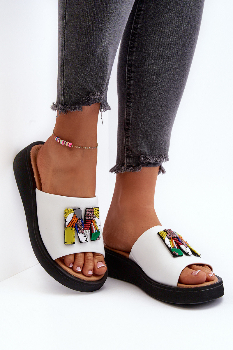 VINCEZADámske kožené šľapky s ornamentmi biele Asames