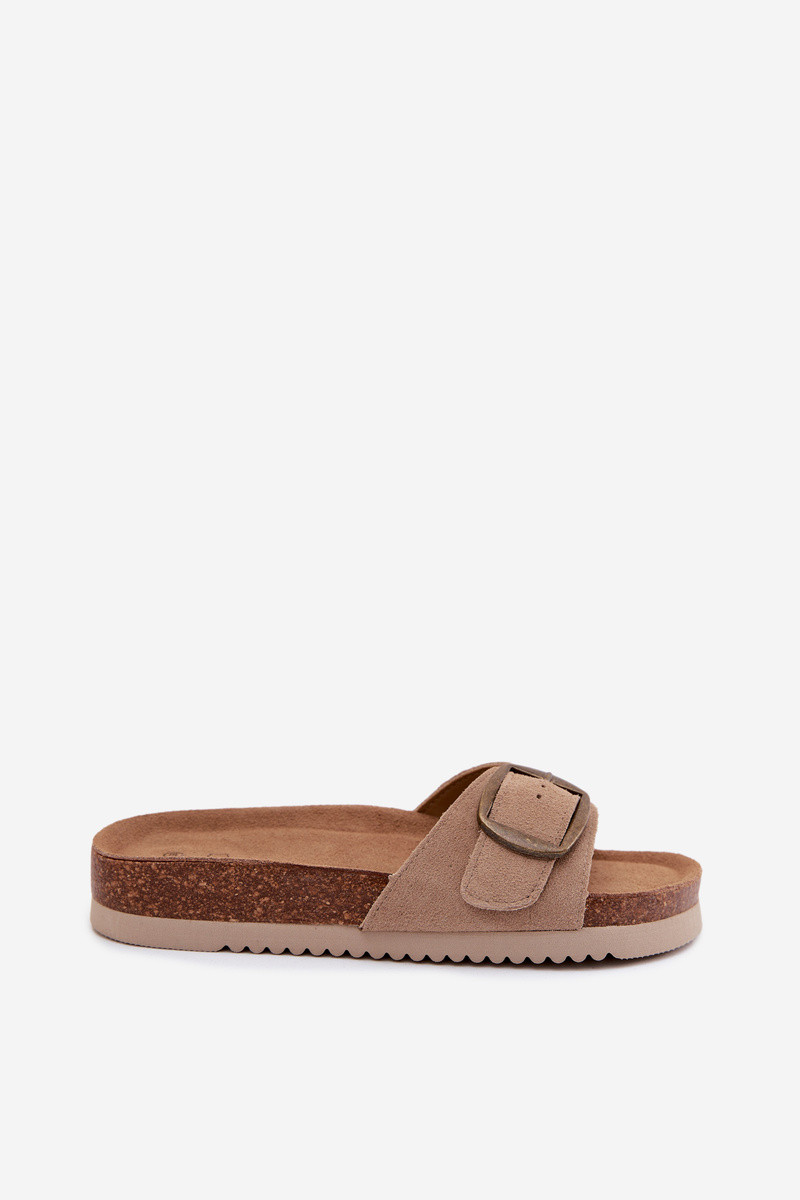 Pieskové dámske šľapky z nubuku so sponami Emiline