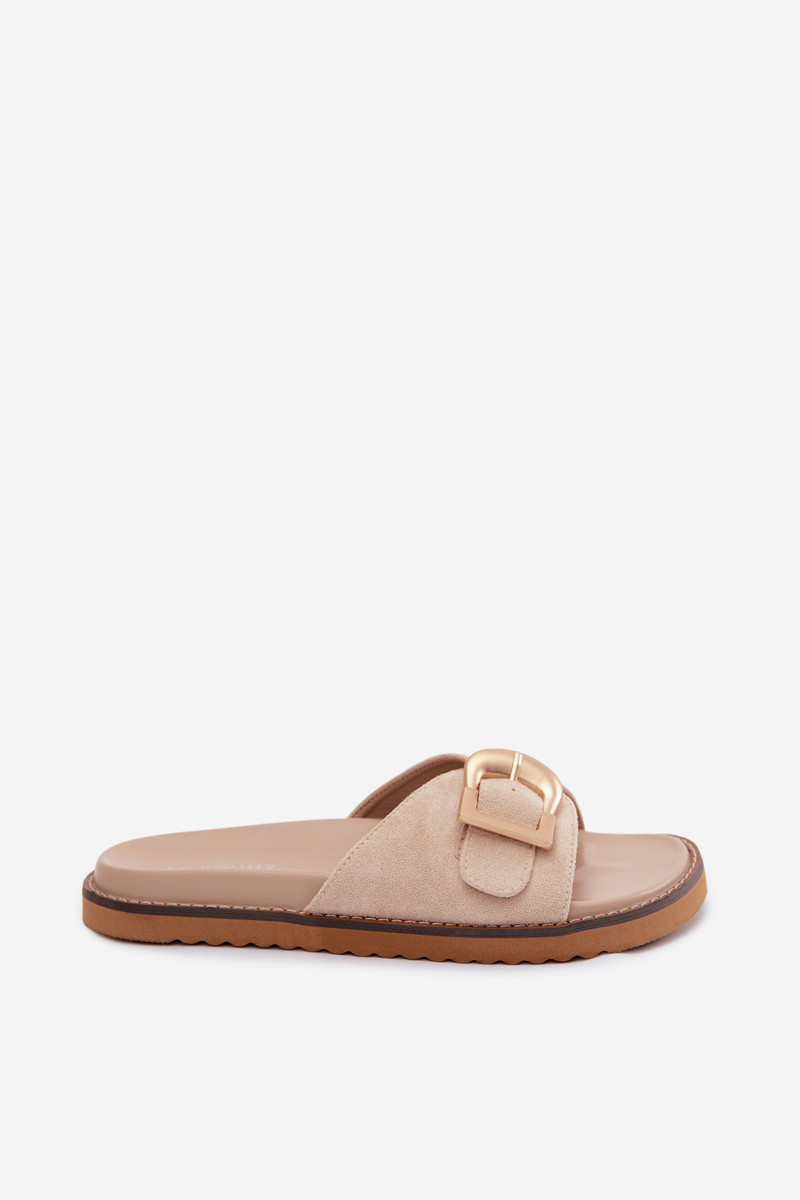 Pieskové dámske šľapky so zlatými sponami Elviane