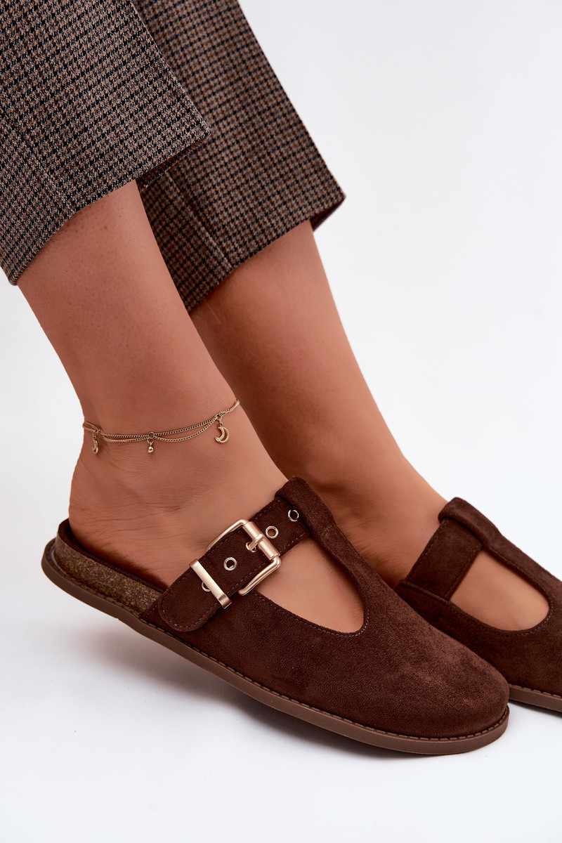 Dámske papuče MuleImitacji zo semišuu CzekoladoIne Melvia