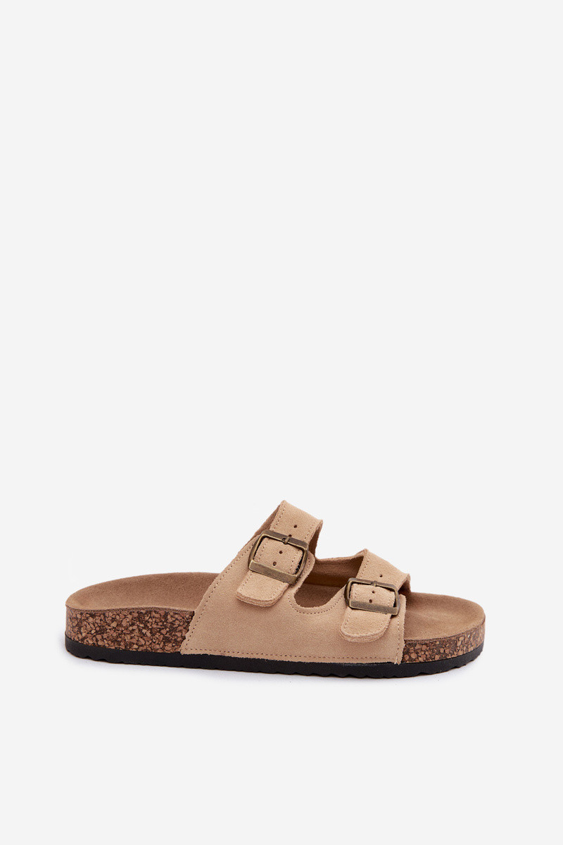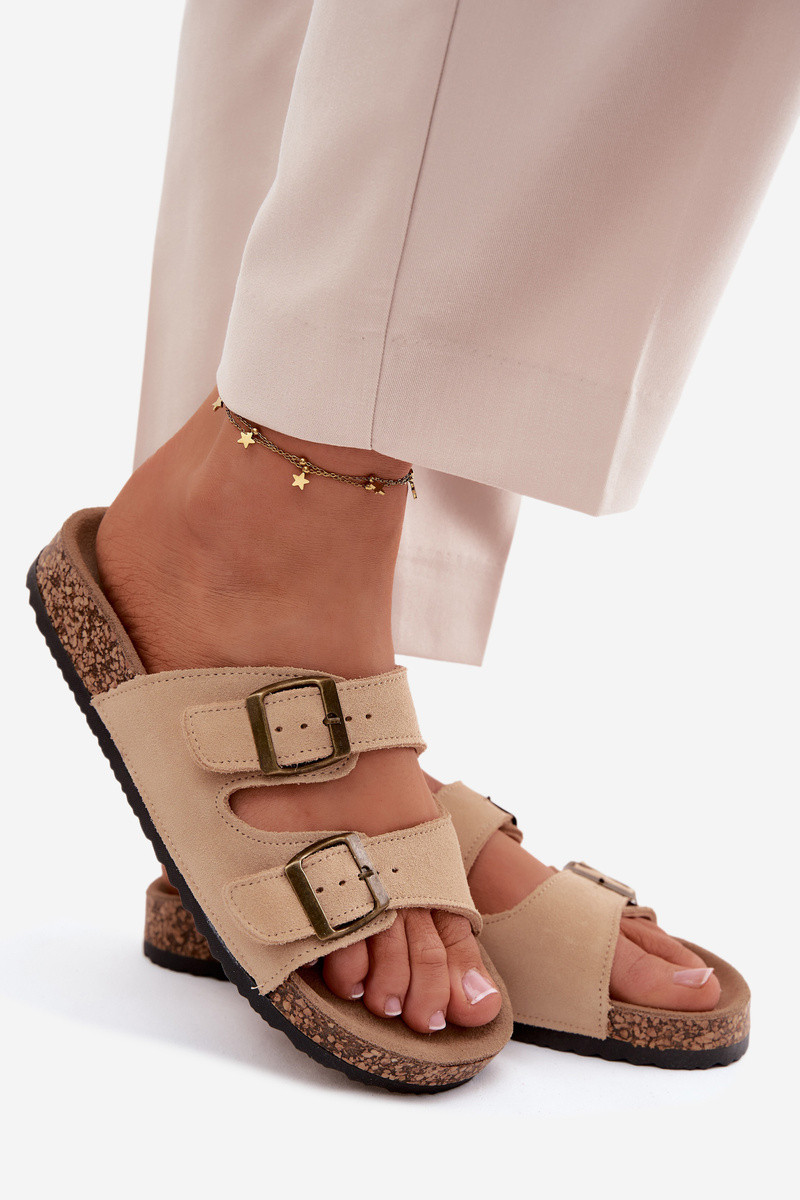 semišové papuče Zapnuté korkovej podrážke s prackami béžová Tavira